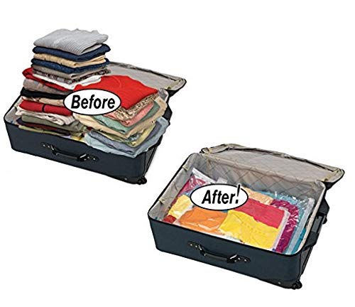• SAVE SPACE: Ecogreen Storage compression bags remove excess air from your garments by hand-rolling air out through a one-way pressure valve providing up to 3X more packing space. NO vacuum required – Just PACK, ZIP and ROLL. Increase storage space in your suitcase, luggage or closet.